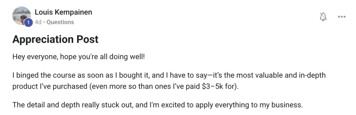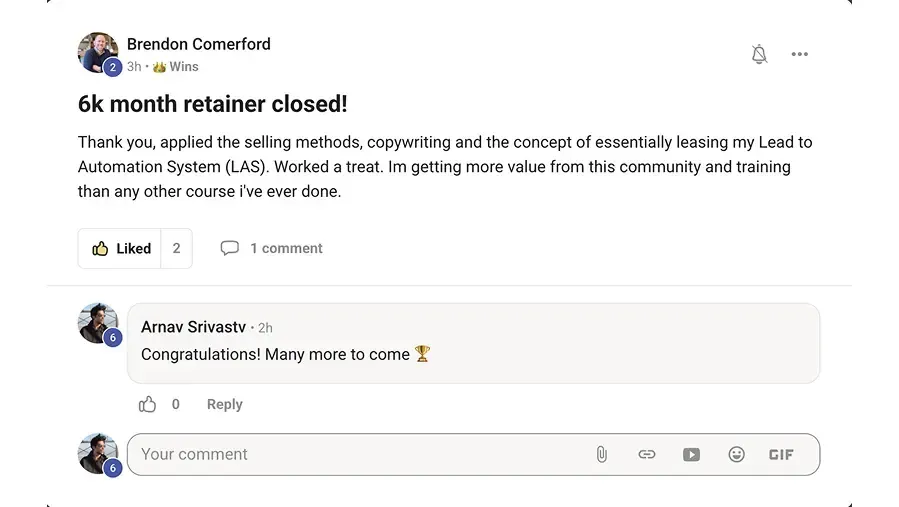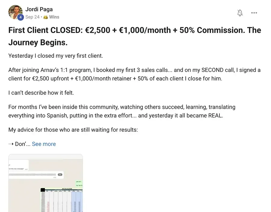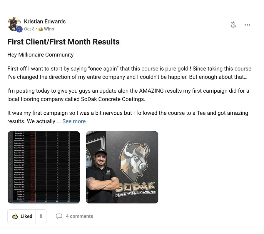 This frees you up to work 2-4 hours a day, charge $6K-$8K setup fees + $2,500/month retainers per client...