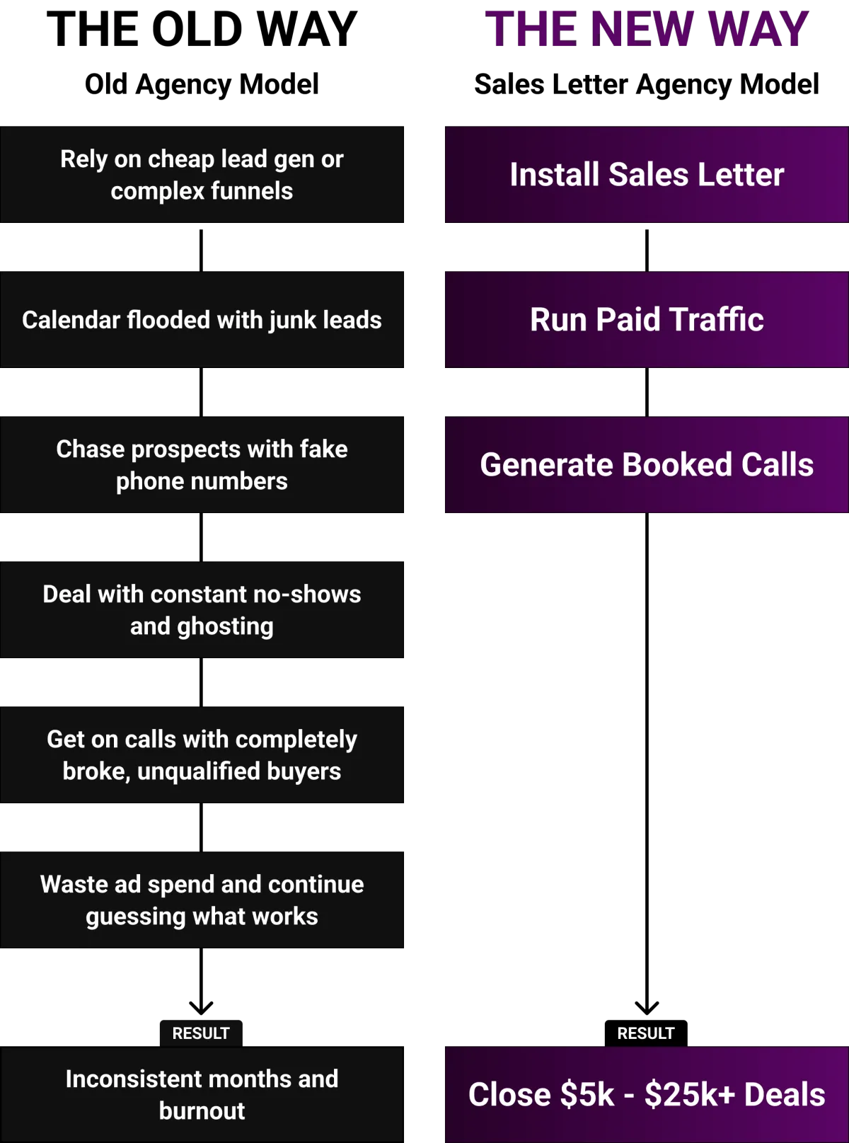It’s a lean agency model built around one sales letter and automated follow-up that pre-sells prospects and books high-quality sales calls.
